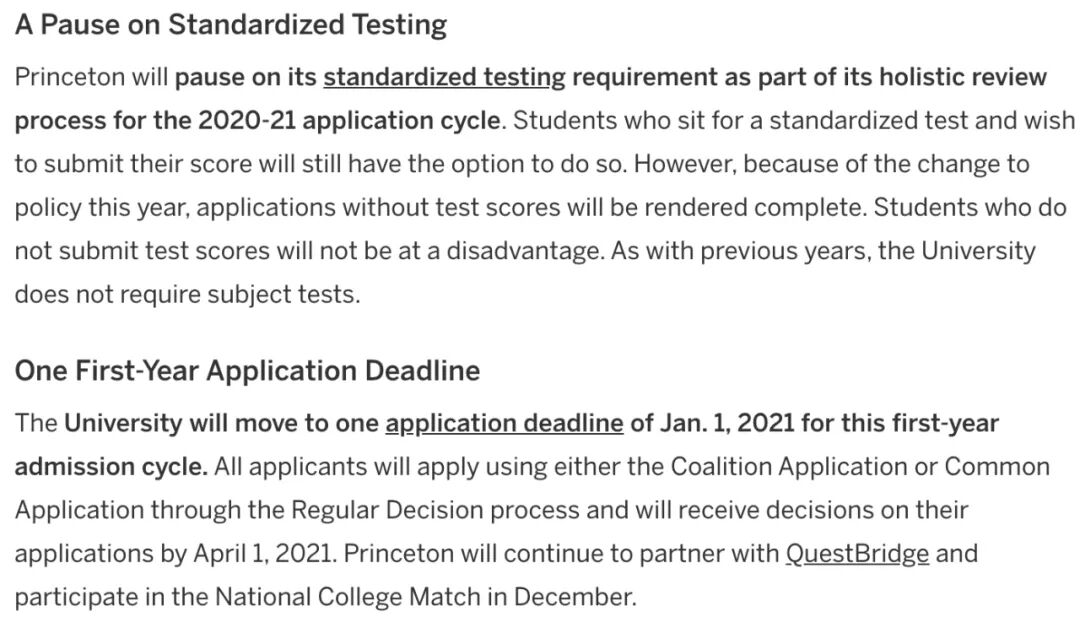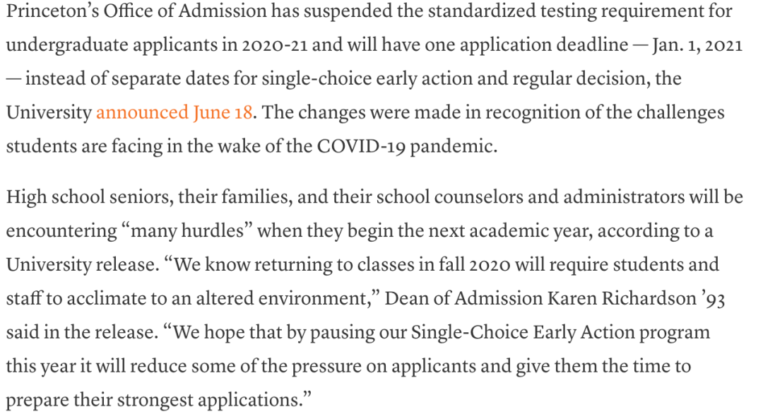 美国时间6月18日,普林斯顿大学招生办在官网更新了针对2020-2021年度本科申请的两项重大调整:
