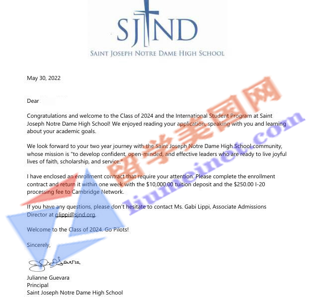 录取学校:圣约瑟圣母高中Saint Joseph Notre Dame High School